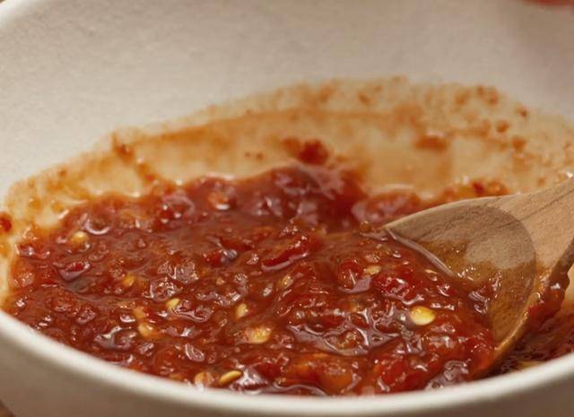接下来我们制作调味的酱汁。取一口小汤锅,倒入清水,然后加入番茄酱、拉差酱、鱼露、糖等调味,开火加热,边加热边搅拌,煮至沸腾均匀之后将火关掉,将汤盛于碗中备用。