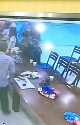 从视频画面可以看到,一名男子鬼鬼祟祟地走到桌边,趁其他人不注意时,伸手将桌上的玉镯放入口袋。
