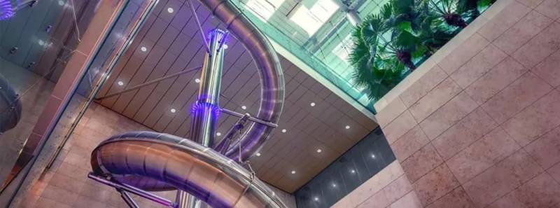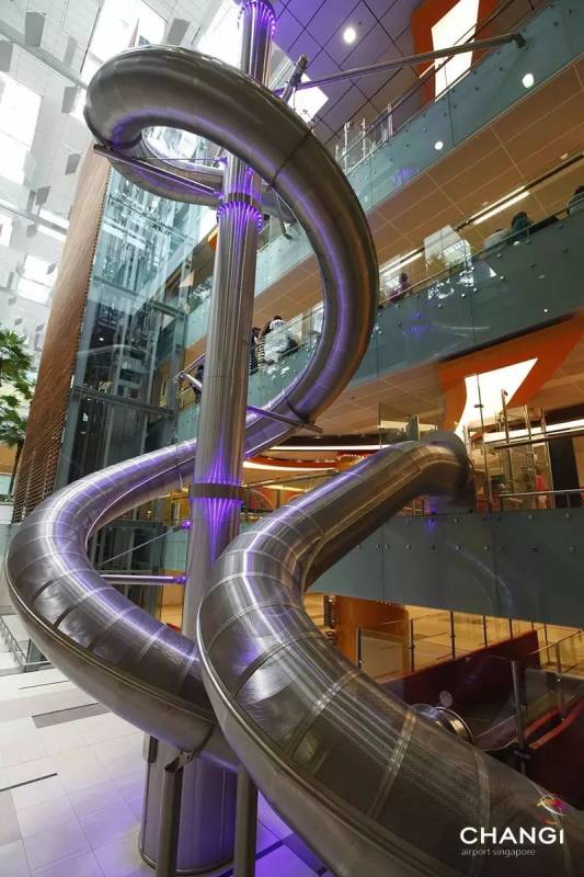 童心未泯的你是不是和小文一样,看到这个巨型滑梯的时候超级激动?这是新加坡最高的滑梯也是世界上最高的机场滑梯!它足足有12m高~从1楼跳进滑梯,然后一路尖叫兴奋就到了地下3层。