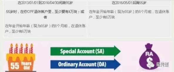 退休户头(RA):满55岁后,OA户头和SA户头的存款将转移到RA户头。