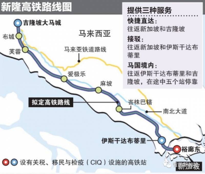 衔接新加坡和吉隆坡、预计能分别在90分钟内直达两地的新隆高速铁路,最快在2026年通车。全长约350公里的新隆高铁共设八个站,其中,位于裕廊东的新加坡终站、柔佛州的伊斯干达布蒂里(Iskandar Puteri)站,以及距离吉隆坡市中心约四公里的大马城(Bandar Malaysia)终站,都将设有关税、移民及检疫设施。由于新马出入境检疫同设一处,搭客离境时通关一次即可,过程如同衔接英国伦敦和法国巴黎的欧洲之星(Eurostar)高铁服务一样便捷。乘客可视目的地选择服务类型,最快可在90分钟内从新加坡直达吉隆坡,比驱车快近两倍。李总理在仪式后的联合记者会上指出,新隆高铁落成后,两地人民可在一天内往返新隆,“一点也不像出国”,生意人经商也更加便利。