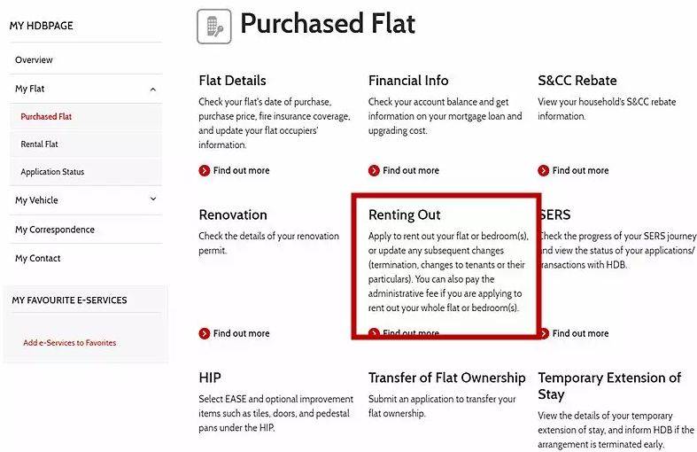 第二步:选择My Flat > Purchased Flat > Renting out