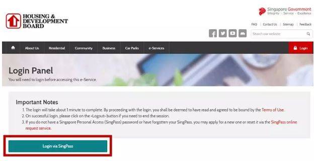 第一步:用Singpass登录HDB官网