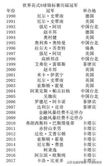 世界男子9球锦标赛从1990年开办,数十年来,各地顶尖九球好手掀起过浩大的浪潮,在此争夺最终荣耀。