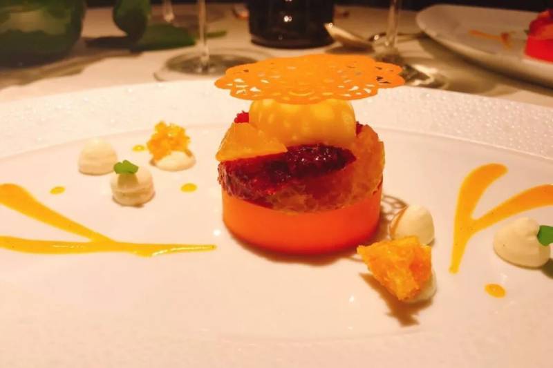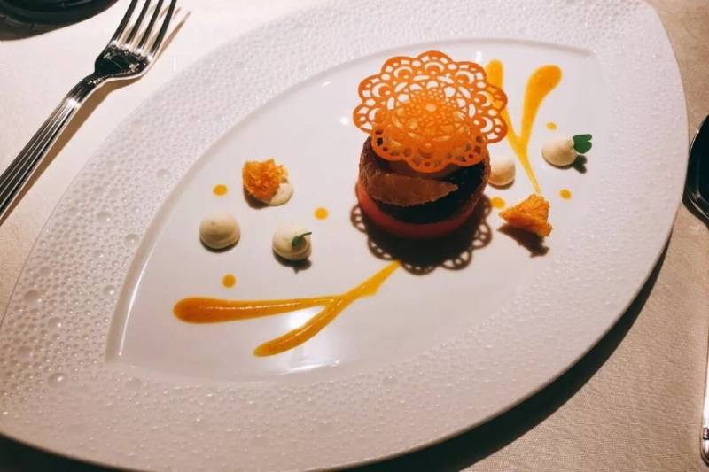橙皮做成薄薄的剪纸,光看这个,就知道主厨出手不凡。