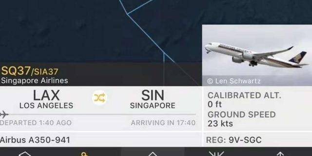 广告航班SQ37客机当地时间星期五晚上11时24分(新加坡时间下午2时24分)从洛杉矶启航,预计18个小时抵达新加坡。