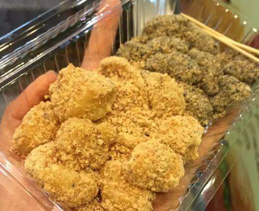 那种软软黏黏的口感特别棒.制作麻糍的时候,糯米团子被切成小块,然后过上花生碎、芝麻碎,这是一种简单却让人上瘾的美味,对许多新加坡人来说吃上一份麻糍,就是儿时最快乐的事。