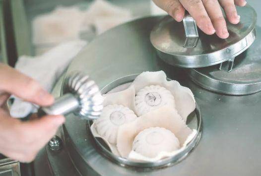 嘟嘟糕就是用米粉和馅料做成的蛋糕,把原材料装进小模子里,只需蒸几分钟蓬松的嘟嘟糕就可以出炉了,它有各种各样的馅料可选,许多人喜欢的是椰子和巧克力馅的,除了特别的香味以外,它下面垫的一层班兰叶也是新加坡特色。