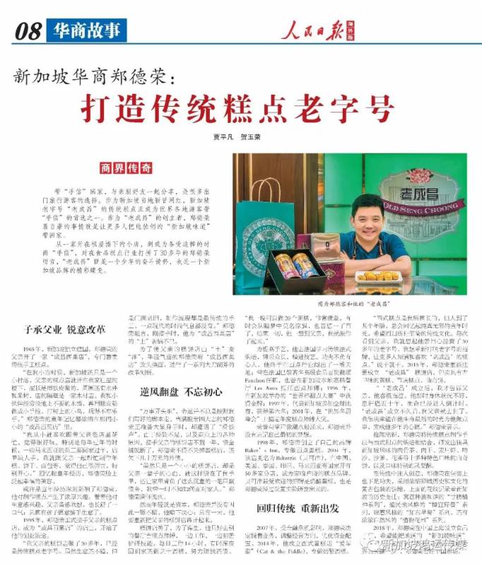 从一家开在祖屋楼下的小店,到成为备受追捧的时尚“手信”,对在食品糕点行业打拼了30多年的郑德荣而言,“老成昌”既是一个少年的奋斗情怀,也是一个新加坡品牌的精彩蝶变。