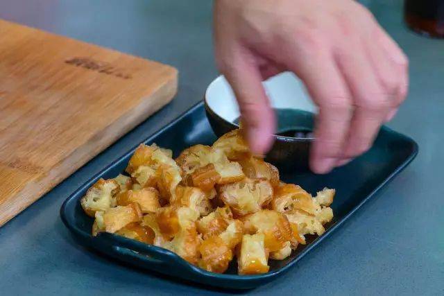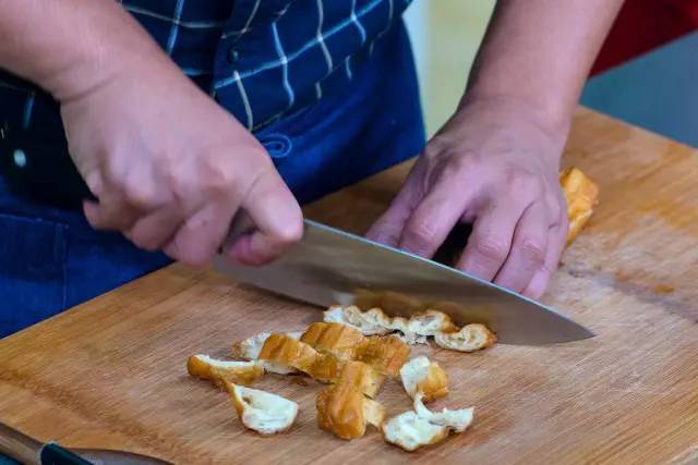 炸油条过程中要使油条酥脆,低油温下锅,高油温出锅。用漏勺不停地拨锅中的油条,使油条受热均匀。