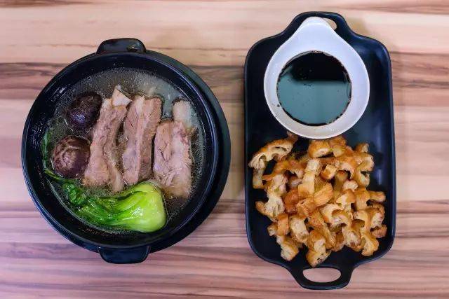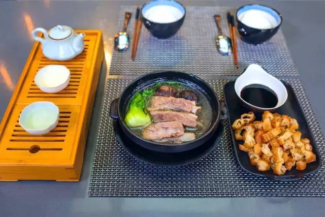 肉骨茶,是肉骨(排骨)和茶水的组合。肉骨和油条可以直接吃,也可以沾甜酱油吃。配上米饭和茶水,就是肉骨茶。