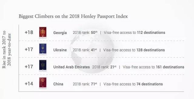 我们的祖国排名虽然不是最前,但却是所有国家中上升幅度最大的4个国家之一,免签、落地签等国家或地区已经达到了74个,名次也从去年的85名一路上升到了71名!,其免签落地签国家和地区有: