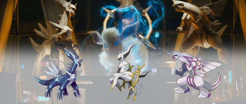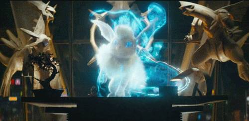 在火布伊进化的背后有三只神兽的雕像,分别是帝牙卢卡(钻石兽),阿尔宙斯(创世神)和帕路奇亚(珍珠兽)。虽然可能不会在电影中以神奇宝贝的形态出现,但以雕塑的形式出现在进化场也足够贴合神奇宝贝的生活了。