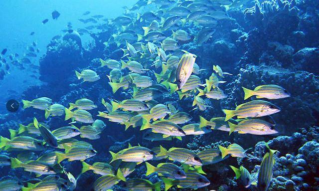 游客可以看到潜水无在水中游来游去的喂食鱼群,很有趣味。海底世界的漫游大概可以花费近四十分钟的时间,让我大开眼界。