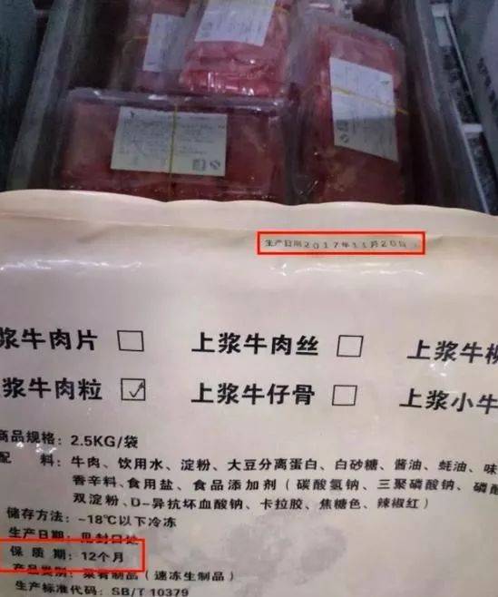 上海某民办国际学校食堂后厨最让家长寒心的是,学校食堂的食材有效期日期似乎是为了“应付检查”,19号当天装在盆里面的香菇、干贝、猪皮、肉的拆封日期写着10月20日(第二天),还有一袋五香粉,原包装上标注的有效期是2017年11月2日,但包装被贴标后,拆封日期写上了2018年6月4日,有效期变成了2019年5月3日。