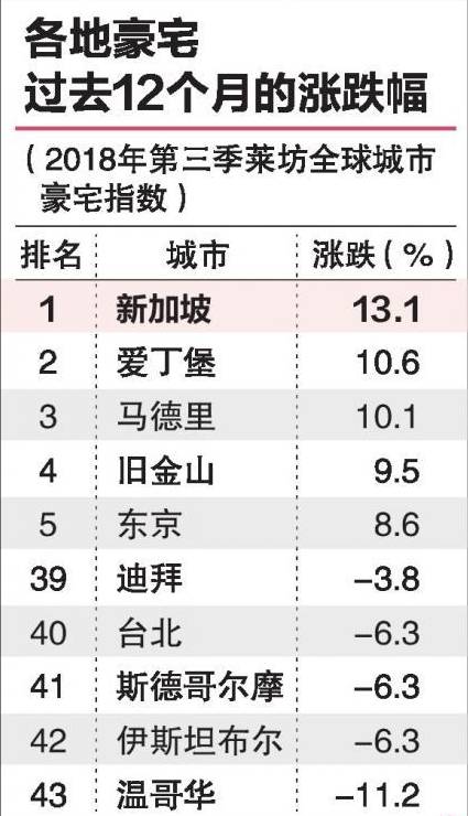 广告根据房地产经纪公司莱坊(Knight Frank)的“全球城市豪宅指数”(Prime Global Cities Index),同全球43个城市的表现比较,新加坡在第三季高居榜首。