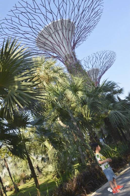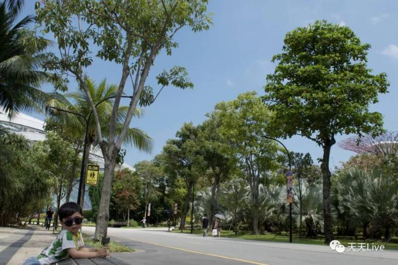 晴空树是以新加坡随处可见的雨树为原型,雨树据说是建国初期李光耀出国访问时见到路边有这种树,咨询后决定带回新加坡种植,这树既可遮阴又可挡雨,颜值还特别高。它有点像放大版的含羞草,每天下午叶子闭合,早上打开,打开时包在叶片里的露水或雨水纷纷落下,雨树之名由此而来。这是现实版的“前人栽树,后人乘凉”呀。