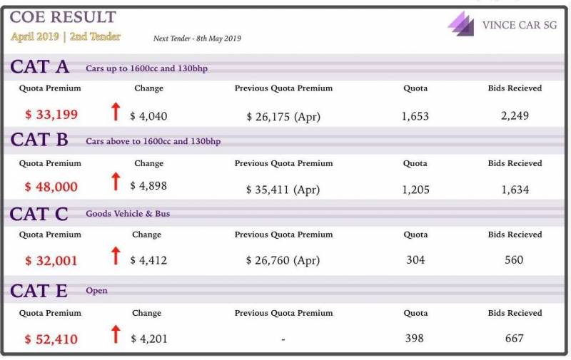 中小型汽车和大型及豪华车已涨至33,199新币和48,000新币。