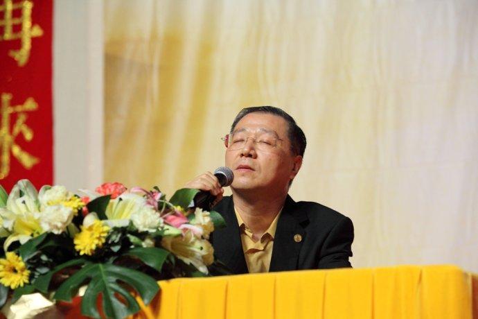 自称观音菩萨化身的卢军宏在给“心灵法门”信徒讲“佛法”。