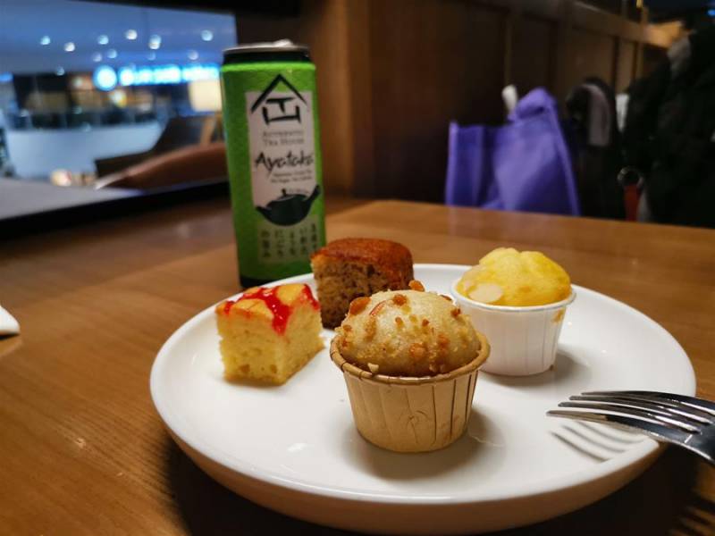 第四round: 冰绿茶(罐装,无糖),糕点。这建议还是不要吃,很干,需要配饮品才能吃下去。汽水也任你喝。