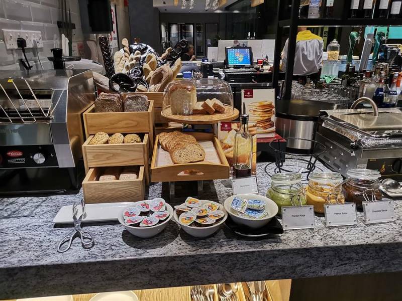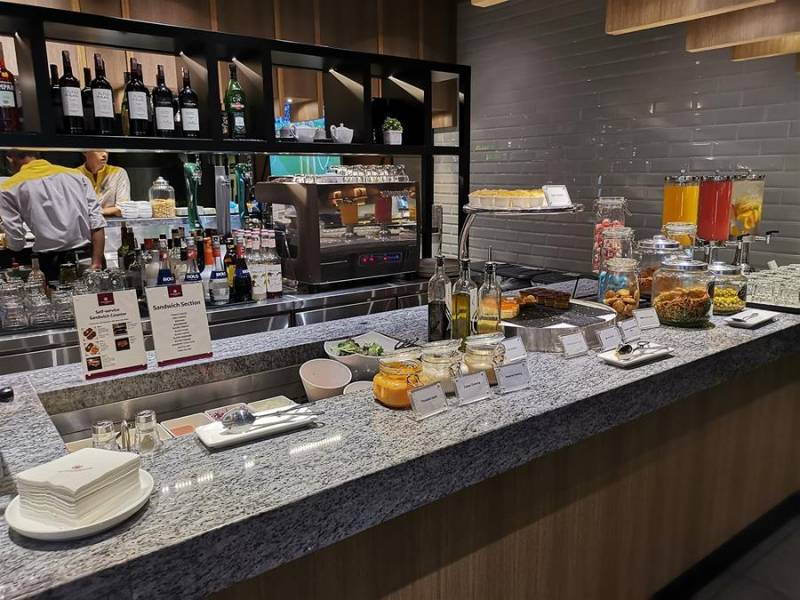 里面有厕所,外面有bar还有65寸电视可以看(踢足球等)其实还有可以洗澡的,可是在另外的lounge。如果要进去,不知道同样的qr code还需不需要scan过,或者再进入就算第二次的次数。比如说,吃了,出去,然后去另外的lounge要不要再扫码就不知道(我认为是算第二次的入门次数,因为是属于不一样的lounge),但是因为时间关系,没有去试了。