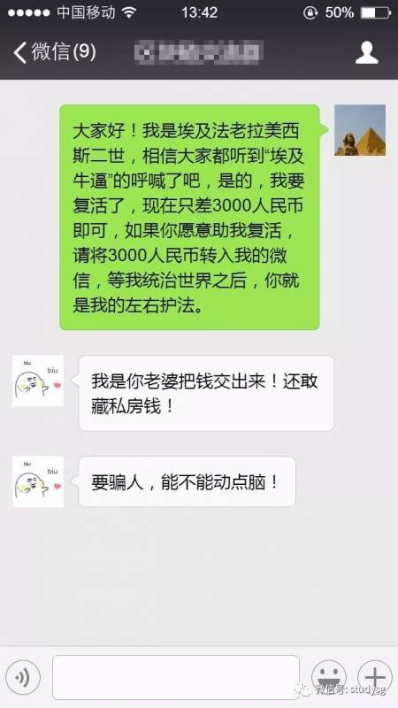 忍住!别笑!方法虽老套,低端!但也有可能会有人中招!那些某某明星因深山被困需粉丝打钱,某某大清格格需复国啥的,也是有人中招的。