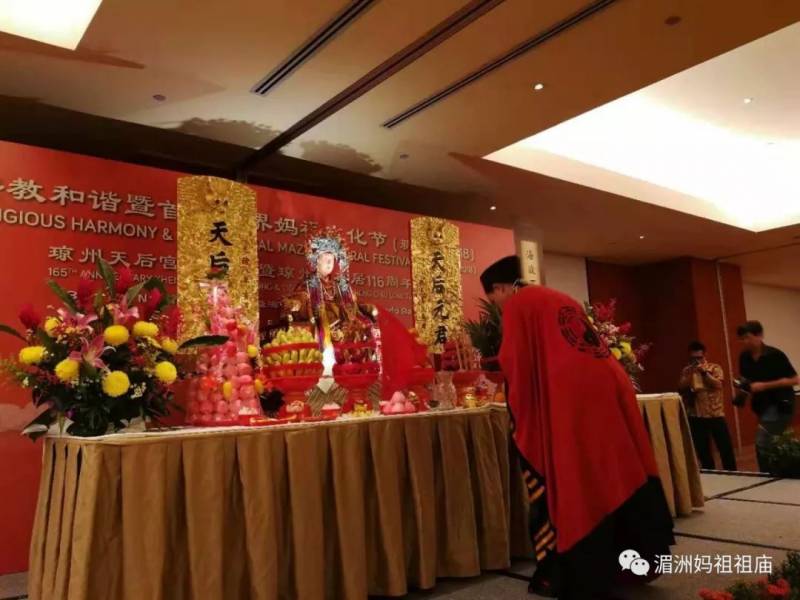 据新加坡琼州天后宫主席符永平介绍,新加坡是个信仰多元化的国家,主要有华人、马来人和印度人等种族,大家信仰不同。借琼州天后宫会馆成立165周年暨琼州乐善居116年庆典之际,举办本次宗教和谐暨首届世界妈祖文化节,旨在传递中华民族优秀传统文化,传承妈祖“立德行善大爱”的精神,积极促进各界不分种族,不分宗教,不分肤色,互相包容,世界和谐。