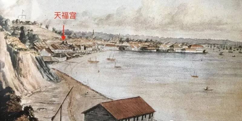 最早福建人移民新加坡的登陆地后来建起了一座寺院,名叫“天福宫”,那个时候也是面向大海的(现在离海岸线好远了)。