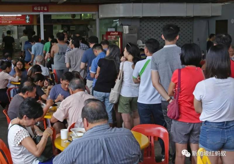 新加坡食客在大巴窑Jackson Square Canteen小贩中心内,心甘情愿排上至少两小时,只为吃一碗五块钱的名牌云吞面。(新明日报)