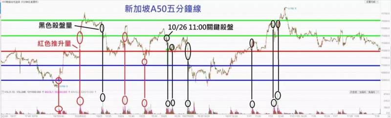 还记得我在10/19A股开盘前, 说新加坡A50在欧美下跌之际九点开盘逆势跳空上涨翻多表态吗, 那天是周末, 接着周一连续第二根长红, 两天共大涨约900点, 一口A50期货保证金880美元, 1点1美元等于获利翻倍, 第三天周二盘中更大的下杀量顺势做较大的调节都有80%以上的获利, 而这根遇到7月以来的区间上缘压力带量下杀尚属合理并非关键, 关键在于10/26早上11点在没有任何消息下的盘中无故带量下杀, 这天就是我说股王10/29利空前有人先知道在A50做空, 更重要的是这天以后都是杀盘量, 没有之前的红色推升量, 所以暂时观望, 既然是由股王挑起杀盘, 那就来看看贵州茅台。
