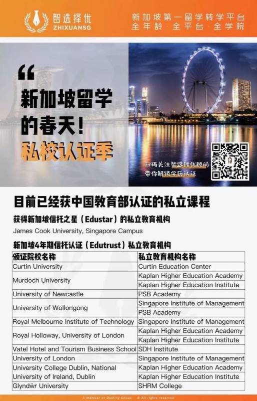 今年3月起,新加坡私立院校与海外合作大学颁发的学历学位,陆续被中国涉外监管网认证。智选择优总是在第一时间,将好消息发布到微信在内的各个平台,并且私信给关注相关院校的同学和家长。