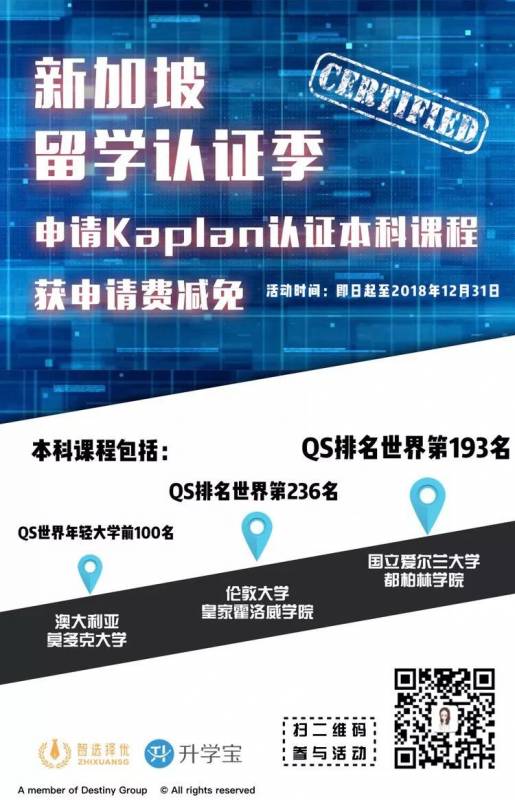 为庆祝Kaplan 3所合作大学学历获得中国认证,智选择优发放福利:2018年下半年申请入学这3所大学的同学,申请费全免!