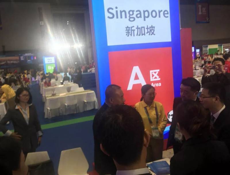 11月6日下午,新加坡贸工部长陈振声率队来到首届中国国际进口博览会,参观新加坡展区,展区占地逾1000平方米,汇集了新加坡航运、金融、设计、医疗、法律等各领域优质企业。