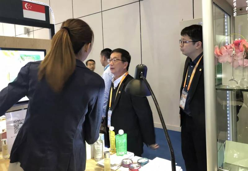 同时新加坡展区也引来了新加坡商会会长的亲切考察,更是驻足枫缇展位前,对“神奇丸”——枫缇彩虹精华胶囊、独具东南亚特色的榴梿面膜极有兴趣,并尝试了获得美国EWG认证的冰藻清露产品,支持枫缇产品在中国市场的拓展,热情鼓励发展,希望把健康的生物科技护肤产品带给大家,进而寻求更广阔的合作空间,把新加坡的优质高科技产品更多的介绍给中国,推向世界!