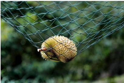 广告等著完熟了之后,让榴梿自然掉落到网上,然后直接一车拉到大马各地或者邻居新加坡这边,很多新加坡榴梿档都是3点开档,从大马运来的树上熟榴梿剥壳就吃