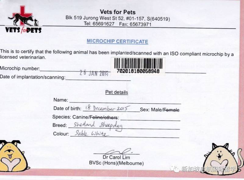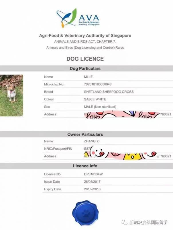 我家米乐是买的时候就很乖的做了各种检查和上狗证以及芯片 所以此刻轻松很多(没有上狗证和芯片的宝宝们 第一件事情自己去AVA办理狗证 或者AVA网站申请狗证,Google 就可以搜索到AVA的地址,如果自己下去办理需要带上IC/护照/准证和一个证明你住址的信件像是电话单等,狗证当时就可以拿到,如果网上办理的话需要等两天狗证会邮寄到家里,之后可以去宠物医院打芯片,️必须有芯片,办狗证和打芯片不冲突,不需要分前后顺序,狗证和芯片产生的费用大概是150新左右)