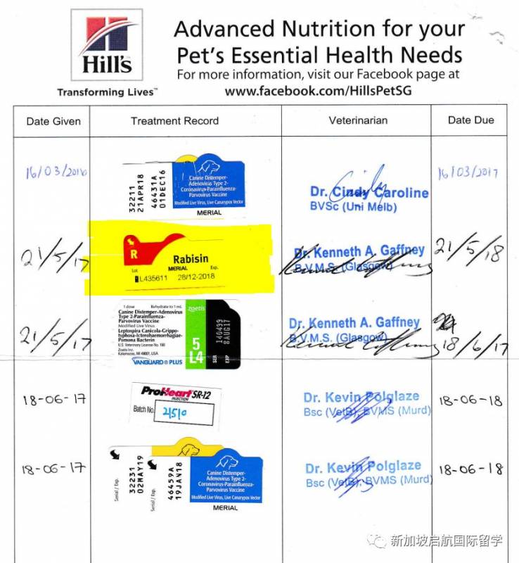 在新加坡叫做rabies vaccination,新加坡是狂犬病灭绝的国家,医生会告诉你在新加坡不需要打狂犬疫苗,你需要告诉医生由于带狗狗回中国,所以个人要求给宝贝打狂犬疫苗,️疫苗必须提前30天打,(30天后才可以出境,硬性规定,没得商量)收费根据诊所稍有不一样,大概税后是$55-60,有效期一年。