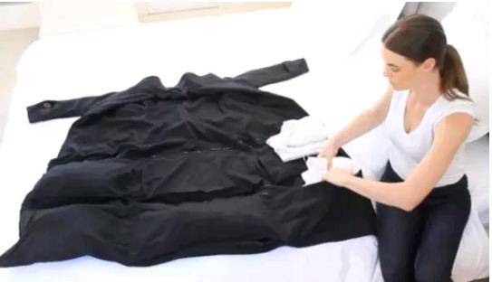 上了飞机之后,也不用担心这个衣服太重,一直穿着会不舒服。因为它可以变成一个行李袋!