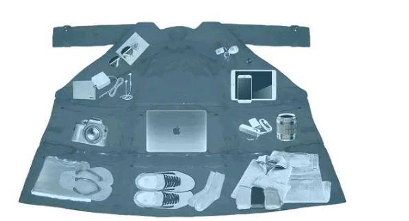 在安检和登机的时候,乘客只需将你的东西放到这款外套口袋里,大摇大摆的穿着上飞机。