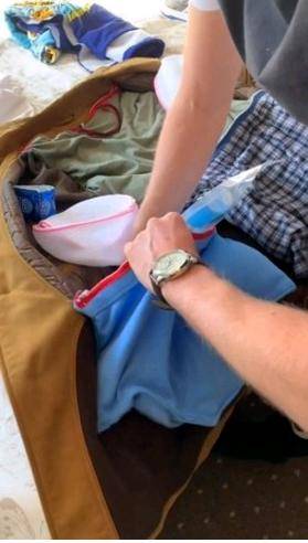 他把改造大衣穿上身后,从曼彻斯特机场登上瑞安航空的班机,飞抵北爱尔兰,一路畅行无阻,并将过程拍成影片放上面簿,将这个省钱妙招提供给网友。