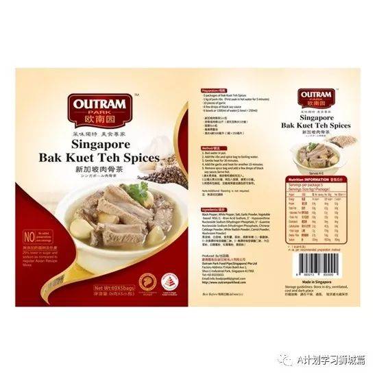 欧南园新加坡肉骨茶汤料,配方纯正,采用GMP标准无菌车间,选用上等原料,用蔬菜水果的精华代替传统的味精精制而成,让每一包肉骨茶包都纯正,美味。以便让餐饮企业和忙碌的家庭用最短的时间准备星级酒家的菜肴。欧南园新加坡肉骨茶汤料的品质已获得新加坡保健促进局的‘较健康选择’标签。
