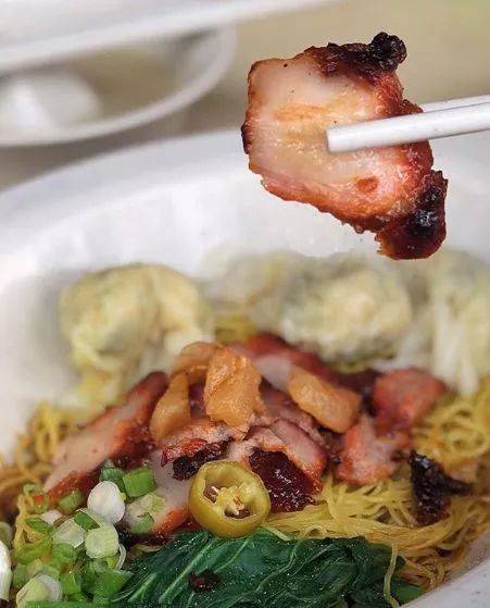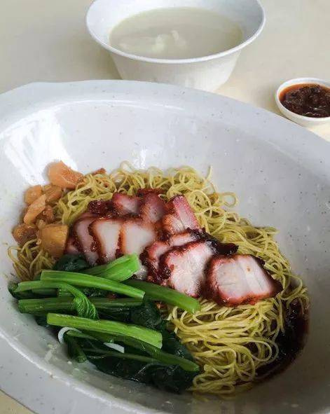 传统的广式云吞面,是没有搭配叉烧在里面的。但是在新加坡,云吞面一般是跟叉烧搭配在一起,而叉烧一定要烤得鲜嫩多汁,可以说是有新加坡特色的广式云吞面。