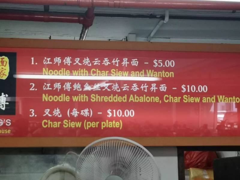 江师傅的叉烧云吞竹升面,价格真的非常可爱,售价S$5,如果在他的私房菜里,一样的配方和原材料的云吞面卖价就要S$18,可以说我们可以用1/3的价格就吃到了米其林的出品呢。