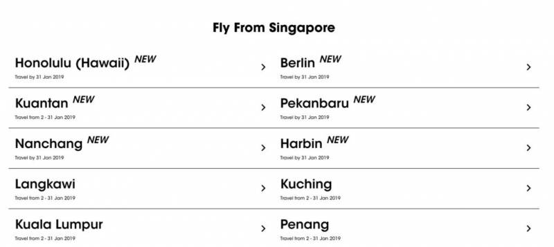2.酷航周二特价,买一送一!50+重磅目的地参与活动