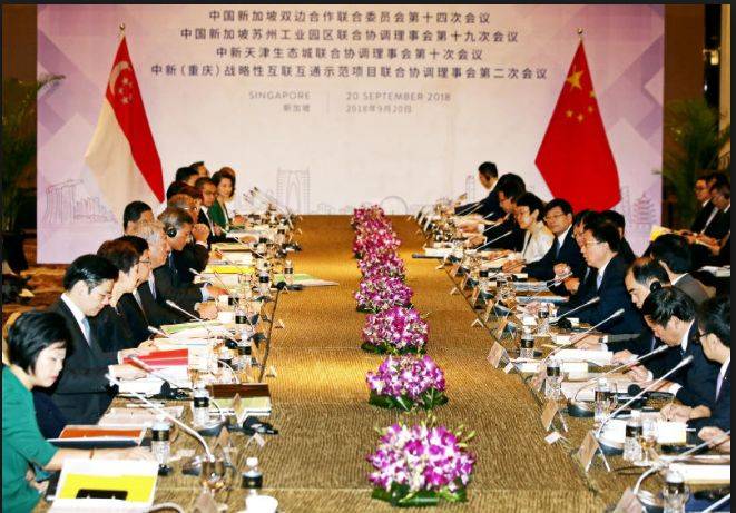 中国和新加坡有着深厚的历史文化渊源,早在建交之前,两国就已经开展了密切的交往与合作。1990年10月建交以来,两国顺应时代发展潮流,积极对接发展战略,在互学互鉴、互帮互助中实现共同发展。2015年11月,中国国家主席习近平对新加坡进行国事访问,将两国关系提升为“与时俱进的全方位合作伙伴关系”。2018年4月,新加坡总理李显龙出席博鳌亚洲论坛并成功访华,两国就进一步加强合作达成多项共识。2018年11月,国务院总理李克强访问新加坡,为两国务实合作注入新动力。