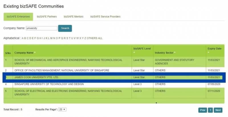 2019 年 3 月,新加坡校区获得了校园安全之星 (bizSAFE Star)。这项荣誉是工作安全和健康理事会第一次为教育领域大学类别中的整个校园颁发安全之星证书,足以见得大学对于校园安全的重视。