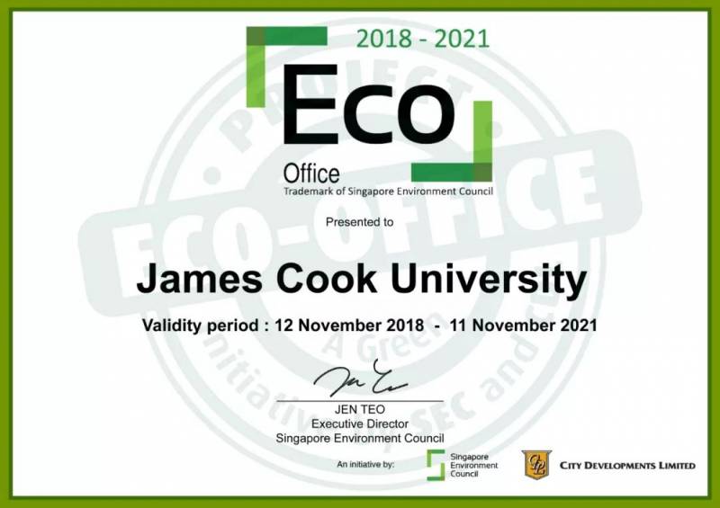 新加坡校区也贯彻著建立绿色校园、绿色办公室的信念,例如:整个校园内没有提供塑料吸管的商家;办公区域的空调会在员工下班后自动关闭等等。在 2018 年 11 月,新加坡校区获得了国家环境局颁发的 Eco Office 证书。