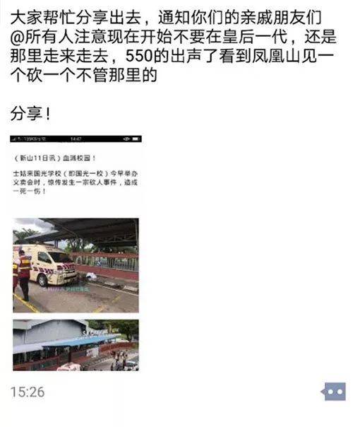事件发生后网上出现贴文,警惕民众告知亲戚朋友减少皇后花园一带活动。