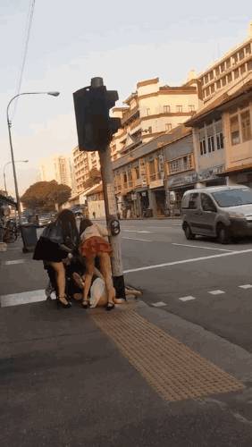 两人搏斗延伸到马路上,尽管已经打倒地上,但两人并未停止,由于当时车辆繁忙,情况颇为危险。见状后,青衣艳女、粉红衣艳女和黑衣男纷纷介入,尝试分开两人。不过,双方仍继续打架,黑衣艳女也在过程中春光乍泄,露出了内裤,内衣也疑似滑落。粉红衣艳女同样也在劝架过程中露出了内裤。