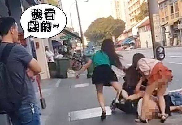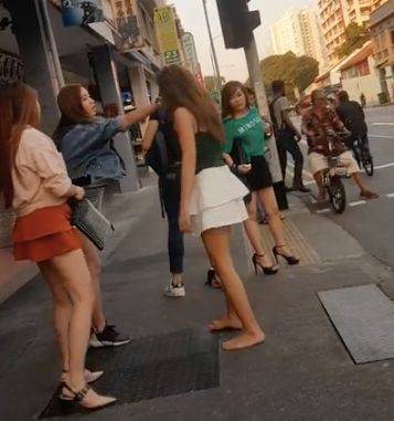 两艳女吃完点心后不知何故发生争执,在路上互相拉扯头发,干到后白色T内裤暴露,三名友人劝架不果,引来众人围观。这起事件发生在两周前,地点是126沈氏道附近的马路上。有网民日前在 facebook 分享了一段近4分钟的视频,引起公众热议。视频一开始,蓝衣艳女和黑衣艳女已开始扭打,双方僵持不下,互相拉扯对方头发。